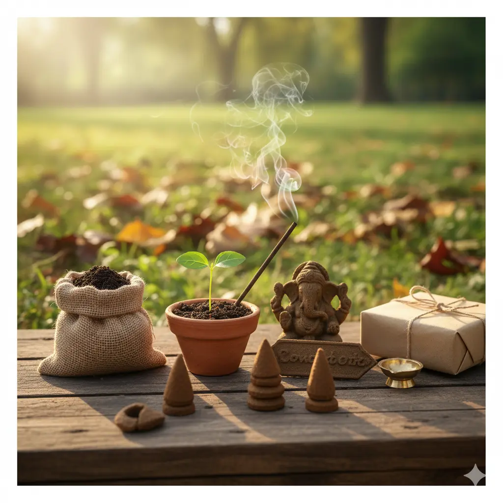 Eco-friendly diyas, idols, and nameplates handcrafted from cow dung — perfect for Diwali, home décor, and conscious gifting that gives back to nature.